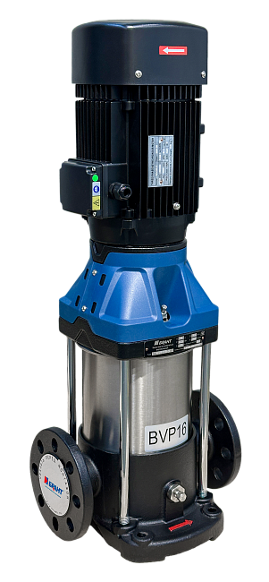 Насосы серии BVP — вертикальные многоступенчатые центробежные агрегаты, обеспечивающие высокий напор при компактном размещении в трубопроводе. Патрубки одинакового диаметра в исполнении in-line упрощают установку и уменьшают габариты системы, а электродвигатели класса IE3 гарантируют высокую энергоэффективность и соответствие современным требованиям.